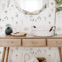 Decochic Papiers Peints Papier Peint Vinyle Adhésif Fleurs Sauvages Verts 50×300 Cm